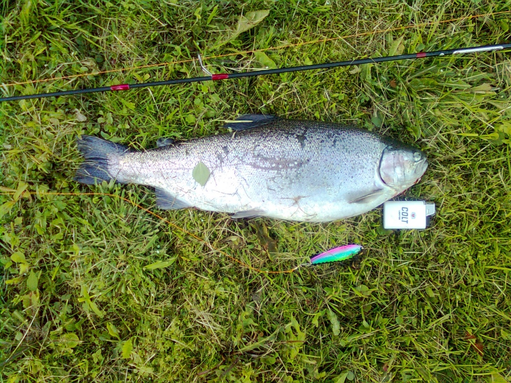 | Kirjolohi 1,48 kg | | Saantiaika | 15.06.2010 klo. 21:40 | | Kalastusmuoto | Heittokalastus | | Vesistö | Kyrönjoki, Ylistaro | | Säätila | Puolipilvinen | | Uistin | Kuusamo Lätkä | | Vieheen väri | Värikäs | | Ottisyvyys | 1 m | | Veden syvyys | 1,5 m | | Ilman lämpötila | 18 °C | | Kalapisteet (sijoitus) | 153p (13495.) | Katsottu 665 kertaa |