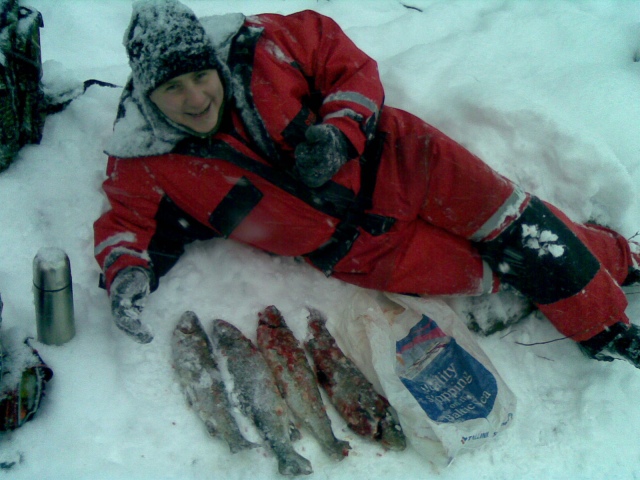 | Kirjolohi ( 4 kpl ) 5,40 kg | | Keskipaino | 1,35 kg | | Saantiaika | 22.12.2009 klo. 11:30 | | Kalastusmuoto | Heittokalastus | | Säätila | Lumisade | | Pituus | 47 cm | | Yhden kirreistä annoin joululahjaks hieno ilma tosin satoi lunta taivaan täydeltä. Tavoitteeseen kaverin kanssa päästiin ja joulu lohi on huomenna pöydässä... :) | Katsottu 464 kertaa |
