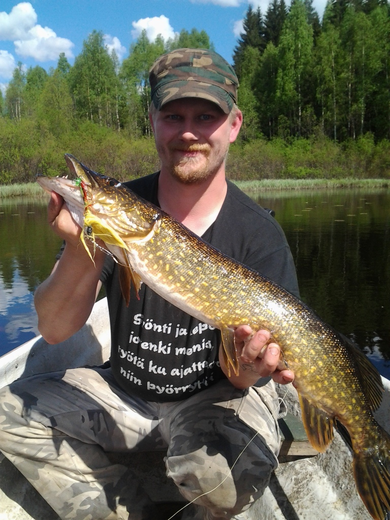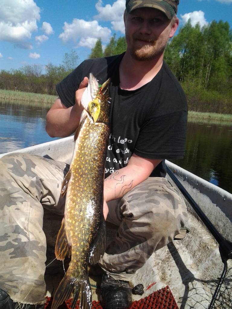 | Hauki 2,40 kg | | Saantiaika | 26.05.2013 klo. 12:35 | | Kalastusmuoto | Heittokalastus | | Vesistö | Härönlampi, Varpaisjärvi | | Säätila | Aurinkoinen | | Pituus | 72 cm | | Ottisyvyys | 0,5 m | | Veden syvyys | 1 m | | Kalapisteet (sijoitus) | 128p (15726.) | | Hääpäivän viettoa :D