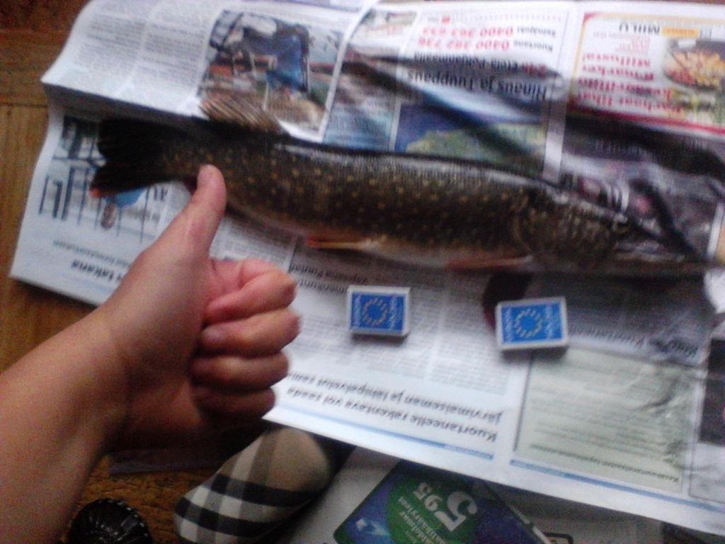| Hauki 1,00 kg | | Saantiaika | 19.10.2012 klo. 14:30 | | Kalastusmuoto | Heittokalastus | | Vesistö | Karjaanjoki, Karjaa | | Säätila | Rankkasade | | Pituus | 43 cm | | Uistin | Jigi Toukka 7 cm 10 g | | Vieheen väri | Sinertävä | | Ottisyvyys | 2 m | | Veden syvyys | 2,5 m | | Ilman lämpötila | 12 °C | | Kalapisteet (sijoitus) | 53p (23720.) | | Oltii kavereitten kaa kalassa ja tämmösen pikku pulikan kaveri nappas joka paino tasan 1kg :D! Tehää siitä ruokaa... Nam. ps. kuva otettu matkapuhelimella :/ | Katsottu 34 kertaa |
