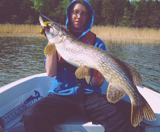 | Hauki 7,45 kg | | Saantiaika | 24.05.2013 klo. 15:50 | | Kalastusmuoto | Heittokalastus | | Vesistö | Piilotettu | | Säätila | Aurinkoinen | | Pituus | 101 cm | | Ottisyvyys | 1 m | | Veden syvyys | 1,5 m | | Kalapisteet (sijoitus) | 396p (2913.) | | Kelta-ruskeaan Lindyn henkariin iski hienon päivän suurin hauki. Tilastojen mukaan 30. saamani +5 kg hauki. | Katsottu 35 kertaa |