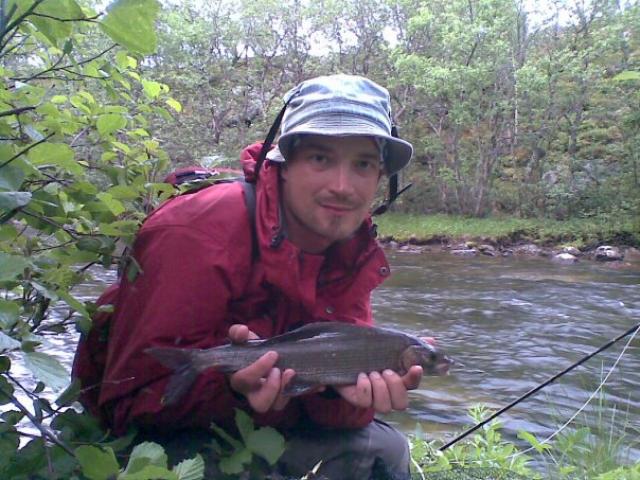 Tutuista montuista illemmalla ruskealla nymfillä kymmeniä harreja 35cm ja ylöspäin. Paksulla kärjellä kalastellen harrit suht nopeasti ylös ja alas niiden runsauden vuoksi. Tylsyyden iskiessä talvella sidottujen perhojen kokeilua ja Royal coachman antoikin mojovasti reissun isoimman harrin minulle(45cm). Kaverilla samaan perhoon iski todellinen juna, joka vei siimaa jonkin aikaa lujaa, kunnes sylkäisi perhon suustaan. Kamua tais homma sapettaa, koska ilmoitti menevänsä nukkumaan.