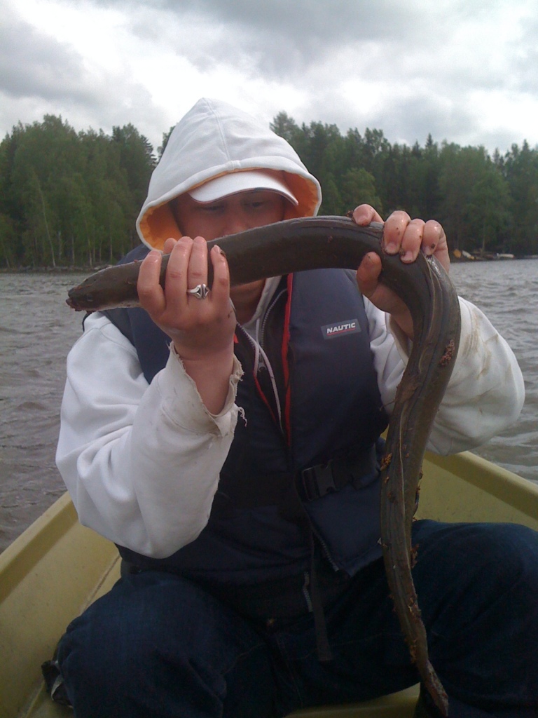 | Ankerias 1,50 kg | | Saantiaika | 15.05.2011 klo. 13:00 | | Kalastusmuoto | Heittokalastus | | Vesistö | Kuokkalankoski, Lempäälä | | Paikka | Kirkkojärvi | | Säätila | Pilvinen | | Pituus | 85 cm | | Uistin | Lunker City Fin-S Fish 12 cm 16 g | | Vieheen väri | Sinertävä | | Kalapisteet (sijoitus) | 321p (4978.) | 21. suurin Ankerias | Yli 1,50 kg Ankerias | | On se voimakas peto tuo ankerias. Luulin että jäi pohjaan kiinni ja aloin vetää ja yht äkkiä huomasin että se liikkuu. Luulin sillon että joku karahka tulee ja sitten yhtäkkiä se alkoi pyristelemään kummallisesti. Sillon tajusin että sielä on kala. En tiennyt mikä kala sielä on kun pyristeli ihan oudosti. Ihan kun siimanpäässä sykkisi joku. Sain kelattua veneen viereen kun pappa sanoi että ankeriashan se sielä ja yritti kaapata sen haaviin. Haavitus meni ihan pieleen kun se kiermurteli ihan pirusti, mutta onneksi se pyöritti itsensä solmuun haavin ulkopuolelle että pappa sai nostettua sen veneeseen. Sitten alkoi taistelu ettei se karannut vauhdilla veneestä ja hakkasin ja mätkin papilla päähän ja eihän se siitä melkein moksiskaan oo ja sitten päätin että lyön puukolla rangan poikki. En tiennyt miten tuollasen kanssa toimitaan ja ei kyllä kukaan meidän venekunnasta tiennyt ja sitten soiteltiin neuvoja ympäriinsä.
