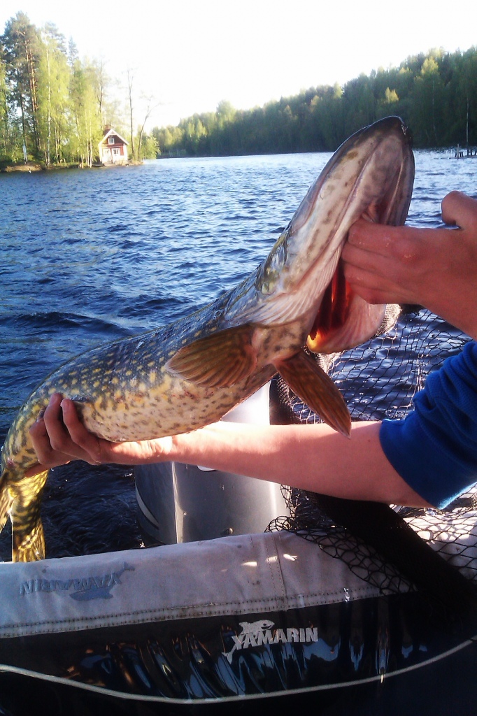 Onnittelut nätistä hauesta. :) metsäjärven/lammen kaloja kun tuommonen väritys?