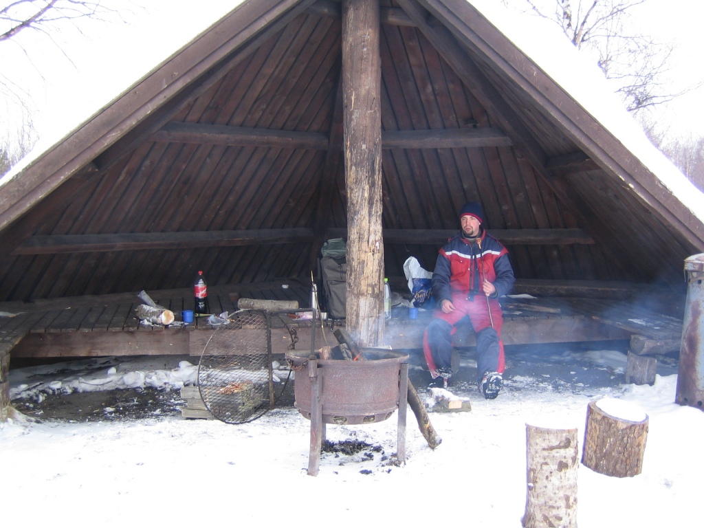 Makkaran syöntiä veitsiluodolla. - Kalastuskuva