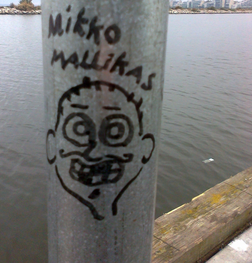 "mikko mallikas aikuisena" sataman eräästä tolpasta löytynyt taideteos :D
