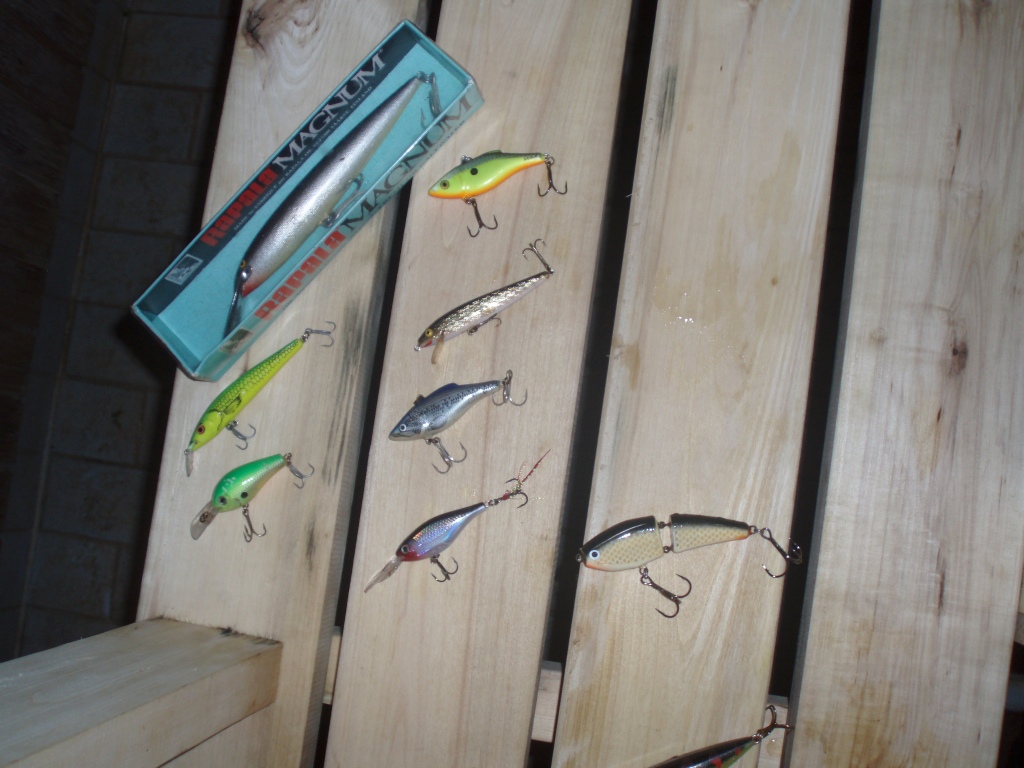 Vasemmalta ylhäältä. Countdown Magnum, Ratlin Rapala, Salmo Sting, Abu Killer, Glass Fat Rap, Ratlin Rapala, X-Rap Shad, Tuntematon