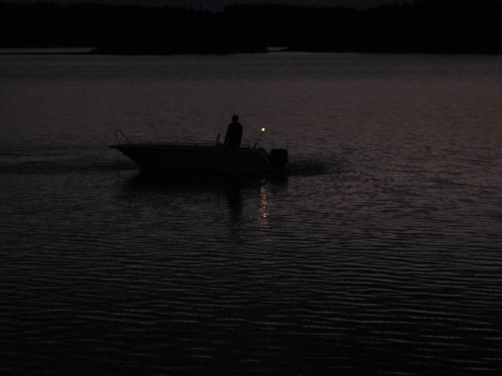 | Muikkua nuottaamassa hissun kanssaLähdimme rannasta klo 21 aikoihin. Pancho haukkui rannalla, ja oli aivan tyyni ja aurinkoinen keli, olimme varmoja että tänään tulisi kalaa. Vartin venematkan jälkeen olimme määränpäässä. Noin kello 22 rupesimme vetämään nuottaa.