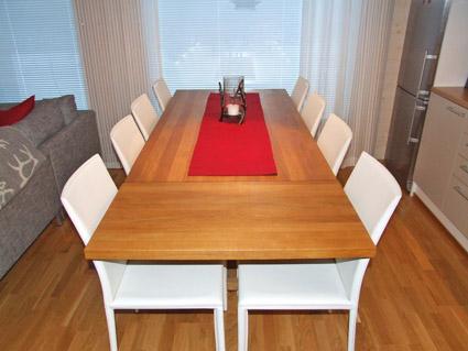 Kuusamosta 28 km pohjoiseen, Rukan kylä (Länsi-Ruka) 3,5 km, Salmilampi 90 m. Vuonna 2009 rakennettu paritalohuoneisto. Makuuhuone 1: 2 vuodetta, makuuhuone 2: kerrossänky + erillinen vuode. Tupakeittiö. Sähkösauna. Yläkerta (korkeus 160 cm): parvihuone1: 2 vuodetta, alkovi: yksi vuode.VarustusJääkaappi ja pakastin, kamiina, 2 wc, mikroaaltouuni, tv, cd-soitin, dvd, astianpesukone, pyykinpesukone, vaatteiden kuivauskaappi, syöttötuoliEtäisyydetHelsinki 800 km, rautatieasema 125 km, moottorikelkkareitti 500 m, ravintola 2 km, kauppa 2 km, hiihtokeskus Ruka 3,5 km, hiihtobussi 500 m, hiihtolatu 80 m, hiihtohissi 2,4 km