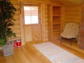 Pyöröhirsihuvila 2011, tupakeittiö, makuuhuone 2 vuodetta, makuuhuone 2 vuodetta, sähkösauna, pesuhuone/pukuhuone, yläkerrassa makuuparvi 2 vuodetta ja lastenvuode, parveke (8 m2), terassi (35 m2).