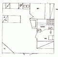 tupakeittiö, 1 makuuhuone, 1 makuusoppi, sauna, pesuhuone/wc, terassi, tuulikaappi, varasto, takka.