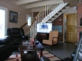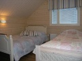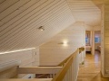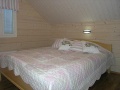 Yläkerta: makuuhuone parivuode (160 cm leveä), makuuhuone 2 vuodetta (80 cm ja 120 cm leveät), oleskeluaulassa levitettävä vuodesohva kahdelle, wc, parveke.