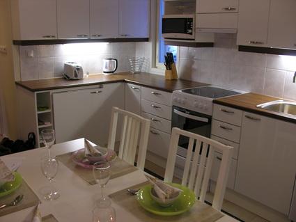 50 km Kemijärveltä pohjoiseen hirsimökki, rakennettu 2012. Alakerrassa makuuhuone, jossa parisänky (160*200cm), tilava tupakeittiö, olohuone, pesuhuone jossa wc, sauna ja eteinen. Yläkerrassa 160 x 200 parivuode ja vuodesohva kahdelle.VarustusSähkövalo, sähköhella, jääkaappi ja pakastin, sähkölämmitys, varaava takka, kylmä ja lämmin vesijohto, suihku, wc, mikroaaltouuni, tv, cd-soitin, dvd, astianpesukone, pyykinpesukoneEtäisyydetHelsinki 970 km, rautatieasema 50 km, moottorikelkkareitti 1,8 km, ravintola 1,9 km, kauppa 1,8 km, naapuri 30 m, kylpylä 26 km, hiihtobussi 1,8 km, hiihtolatu 600 m, latujen pituus 150 km, hiihtohissi 1,8 km, kansallispuisto 600 mVuokran hintaHinta 353 - 908 € viikko, Viikonloppu 101 - 590 €