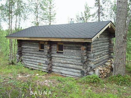 Erillinen kelohonkainen saunarakennus (23 m²), jossa iso sauna (puukiuas) sekä saunatupa (13 m², metallitakka). Saunatuvan puolella 2 vuodetta.