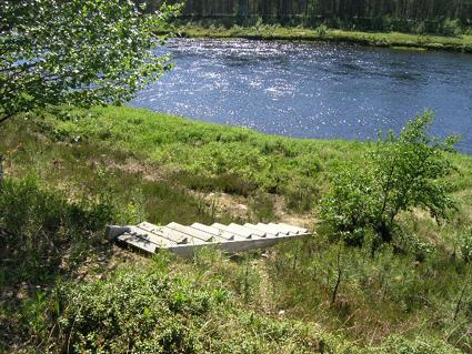 Kemijärveltä 103 km koilliseen, Kemijoki 60 m (joen leveys 50 - 150 m), syvä ranta, virtaava vesi, oma vene (puinen jokivene). Rauhallinen metsätie mökin ja rannan välissä. Joessa hiekkasärkkä, joka soveltuu hyvin uimiseen, etäisyys 1 km.
