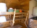 Kelohonkamökki, rakennettu 1989, tuvassa levitettävä laveri (levitettynä 120 cm), parvella 3 patjaa ja rankinen (hyönteisverkko), parvelle jyrkät tikkaat, katettu kuisti. Mökissä lattiakellari ja viemäri tiskipöydässä. Lämmityslaitteena puukamiina. Juomavesi haetaan huoltajalta (6 km) tai tuodaan mukana.
