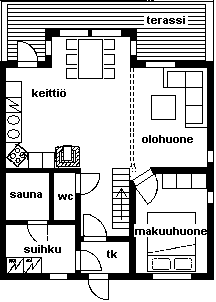 Kolarista 40 km koilliseen, Ylläsjärvi n. 3km, uimaranta n. 4,5km. Hirsirakenteinen paritalohuoneisto 2003. Tupakeittiö, yksi makuuhuone, jossa parivuode, parvi (10 m²), jossa 2 vuodetta ja yksi 120 cm leveä vuode, sauna (sähkölämmitteinen), suihku, erillinen wc. Terassi. Erillinen ulkovarasto.VarustusSähkövalo, sähköhella, jääkaappi ja pakastin, sähkölämmitys, varaava takka, kylmä ja lämmin vesijohto, suihku, wc, mikroaaltouuni, tv, cd-soitin, dvd, astianpesukone, pyykinpesukone, vaatteiden kuivauskaappi, loppusiivous sisältyy hintaanEtäisyydetHelsinki 960 km, rautatieasema 38 km, bussipysäkki 130 m, moottorikelkkareitti 250 m, ravintola 1 km, kauppa 2,5 km, kylpylä 1,5 km, hiihtobussi 130 m, hiihtolatu 300 m, latujen pituus 330 km, hiihtohissi 1 kmVuokran hintaHinta 481 - 1174 € viikko, Viikonloppu 241 - 940 €