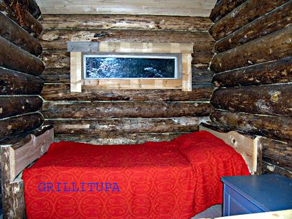 Hirsirakennus 2001, tupakeittiö (levitettävä puusohva lapsille), makuualkovi parivuode, pukuhuone, sauna, terassi. Parvella kaksi parivuodetta (ja levitettävä puusohva lapsille), parveke.